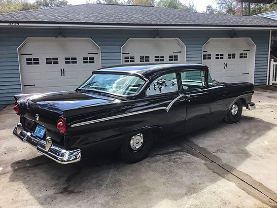 A true performance build that started with ‘57 Custom businessman’s coupe. An extremely rare car that came from the factory without a rear seat, heater and clock delete, stationary rear windows, single sun visor and one arm rest. This build was a real sleeper look that featured minimal stainless trim, dog dish hubcaps, original style interior and dash. Power is from a 428FE Ford engine with tripower and a 4-speed with a 9-inch Ford rear. Finished in a deep black base/clear over a rust-free laser straight body.
