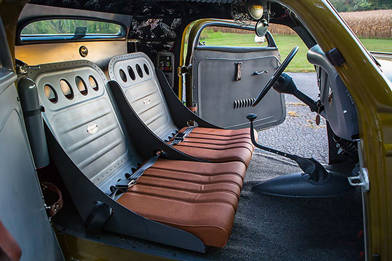 The Gilmore Special Coupe was built along a Bonneville theme. The all steel hotrod features a beautifully chopped top. Suspension is a Corvette independent rear and a chassis engineering front suspension. Power is from a Chevrolet 350 engine and transmission. Unique items on this build included a Southwind heater converted to a speaker, hidden ‘48 Packard/‘65 Corvair shifter, and a ‘40 Ford dash and steering wheel. Finished in ‘46 Ford Barcelona Blue/Clear paint.