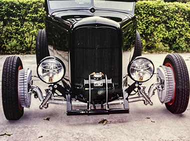 Mike’s Legion Ascot Speedway-influenced Bardahl Special roadster was built on that early theme. This Deuce features a coveted 1939 Mercury Flathead and toploader transmission done in early v8 fashion. A multitude of early 30’s hard to find accessories complete this one of kind vintage roadster. Finished in a deep black base/clear paint.